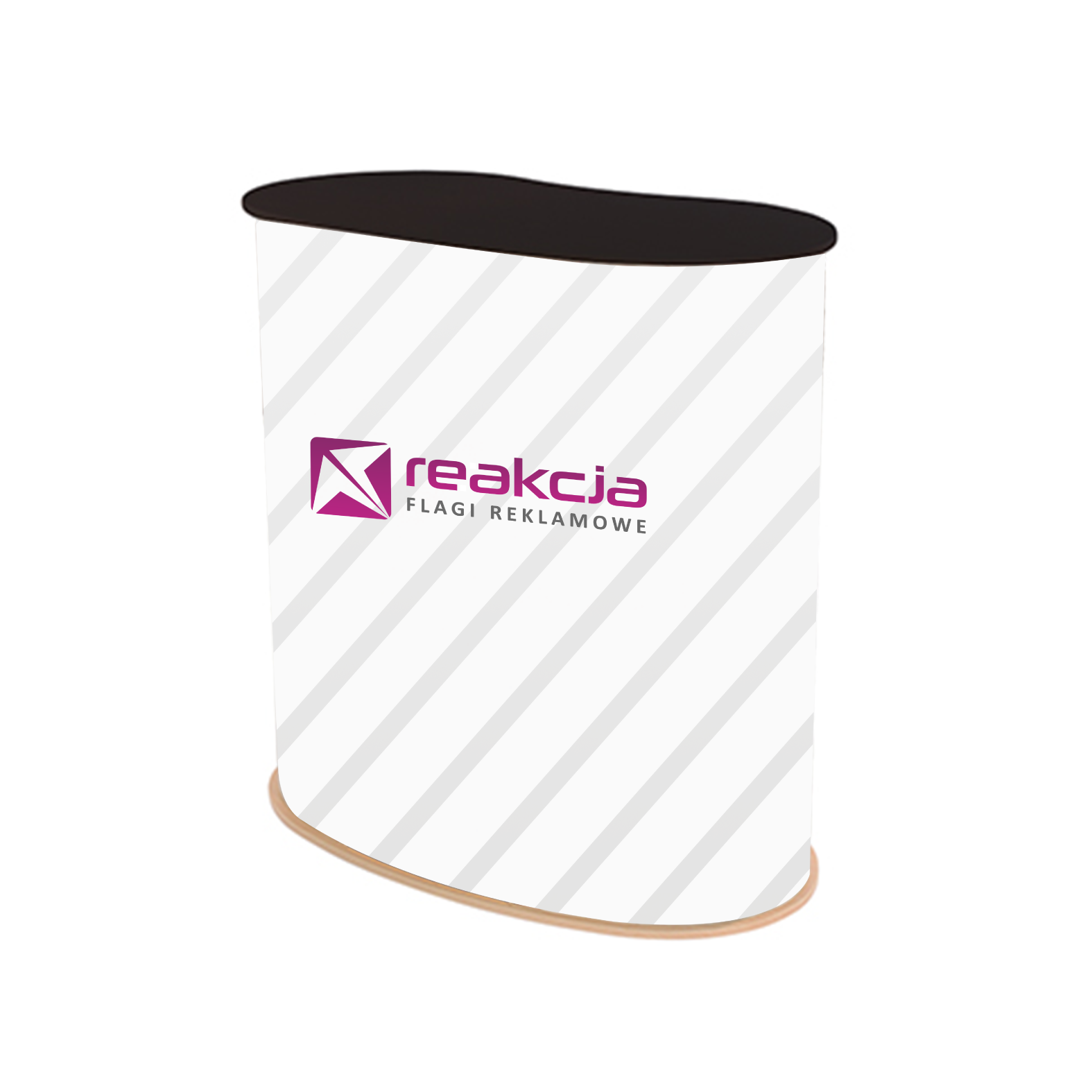 A genuine bestseller in our counter range, featuring all that is required for a complete exhibition display. It consists of these 3 essential components: the top and the base, just like in our magnetic counter, plus a rigid advertising wrap, being also a structural component of the counter. As in the case of high stretch fabrics and traditional polyesters, the entire wrap surface can be printed over in the CMYK colour space. Additionally, this counter comes with bags for storage and transportation,