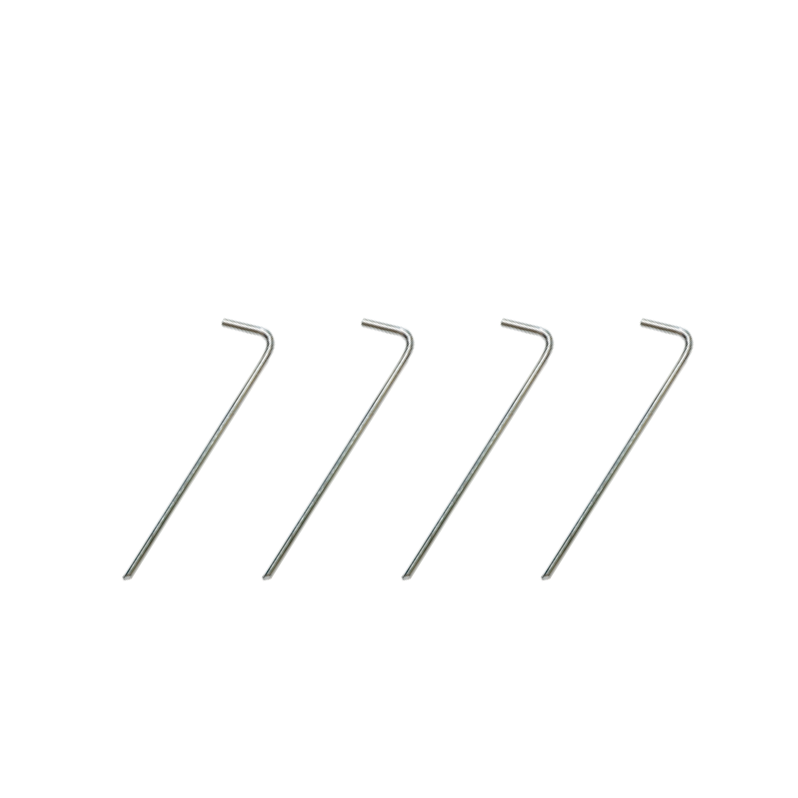 Universal tent pegs made of metal. One set of pegs comprises 4 pieces.