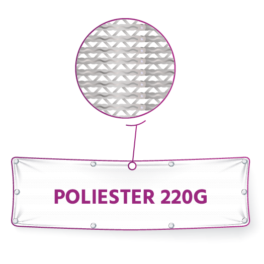- Gramatura 220g (materiał tekstylny typowo banerowy)